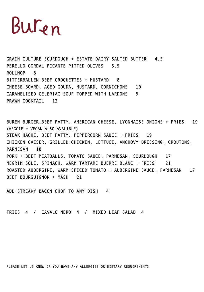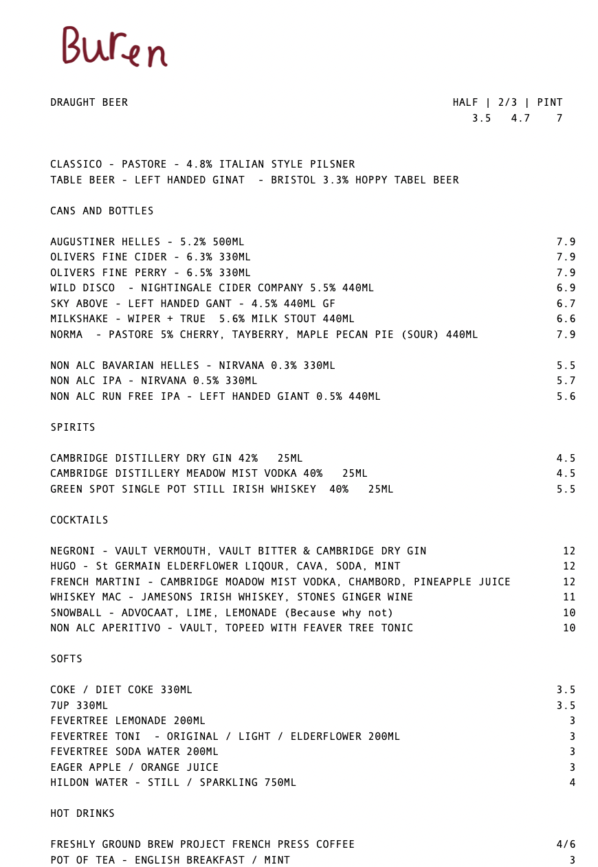Please note - This is an example drinks menu some of our beers and wines will rotate
